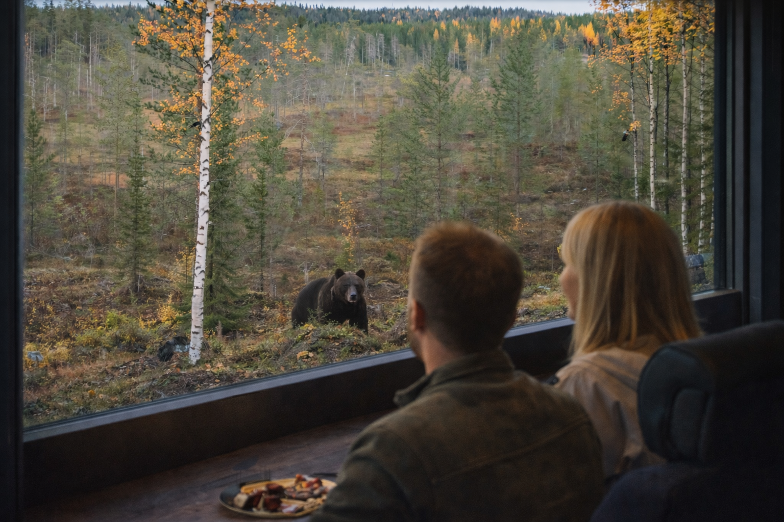 The experience begins with a short introduction, where guests are guided through bear behavior, safety, and the flow of the excursion. After the briefing, a short and easy walk (approximately 400 meters) leads you through the forest to a carefully positioned Bear Watching House.