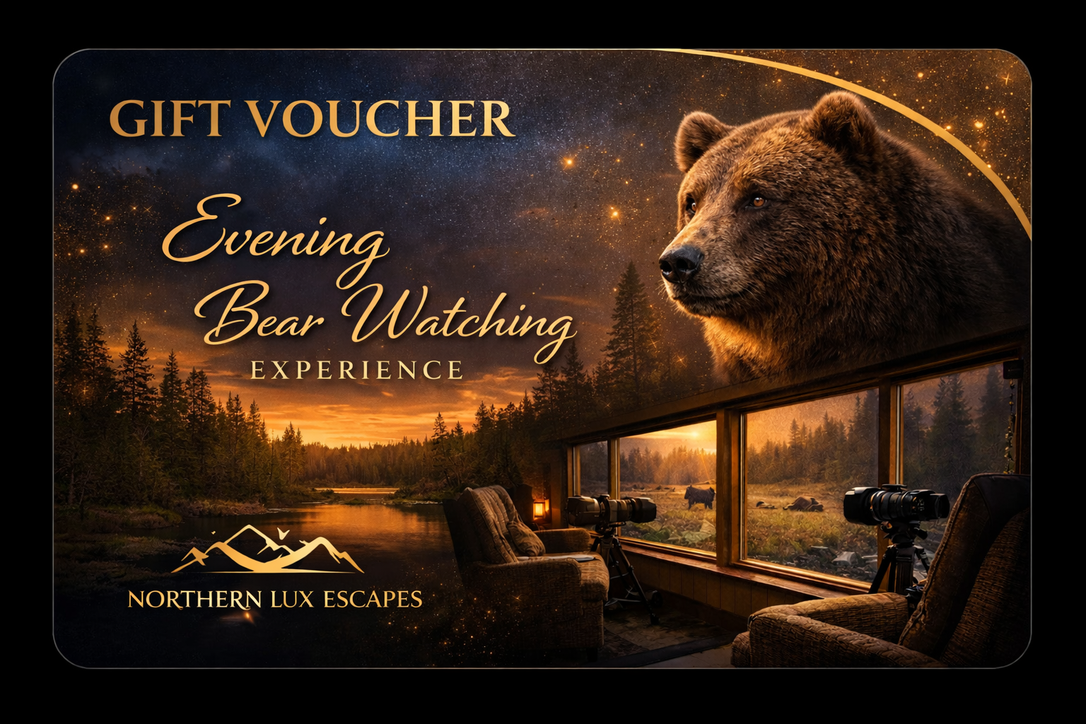Looking for a truly unique and meaningful gift? The Evening Bear Experience Gift Card by Northern Lux Escapesoffers an extraordinary opportunity to witness wild brown bears in their natural habitat — a moment that will be remembered for a lifetime.