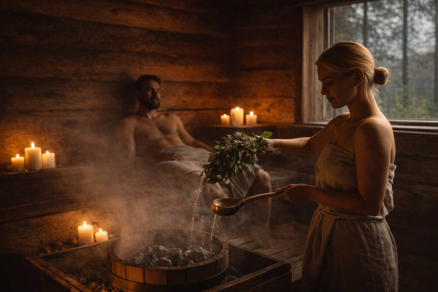 - Use of natural elements (e.g. vihta / birch whisk when in season)