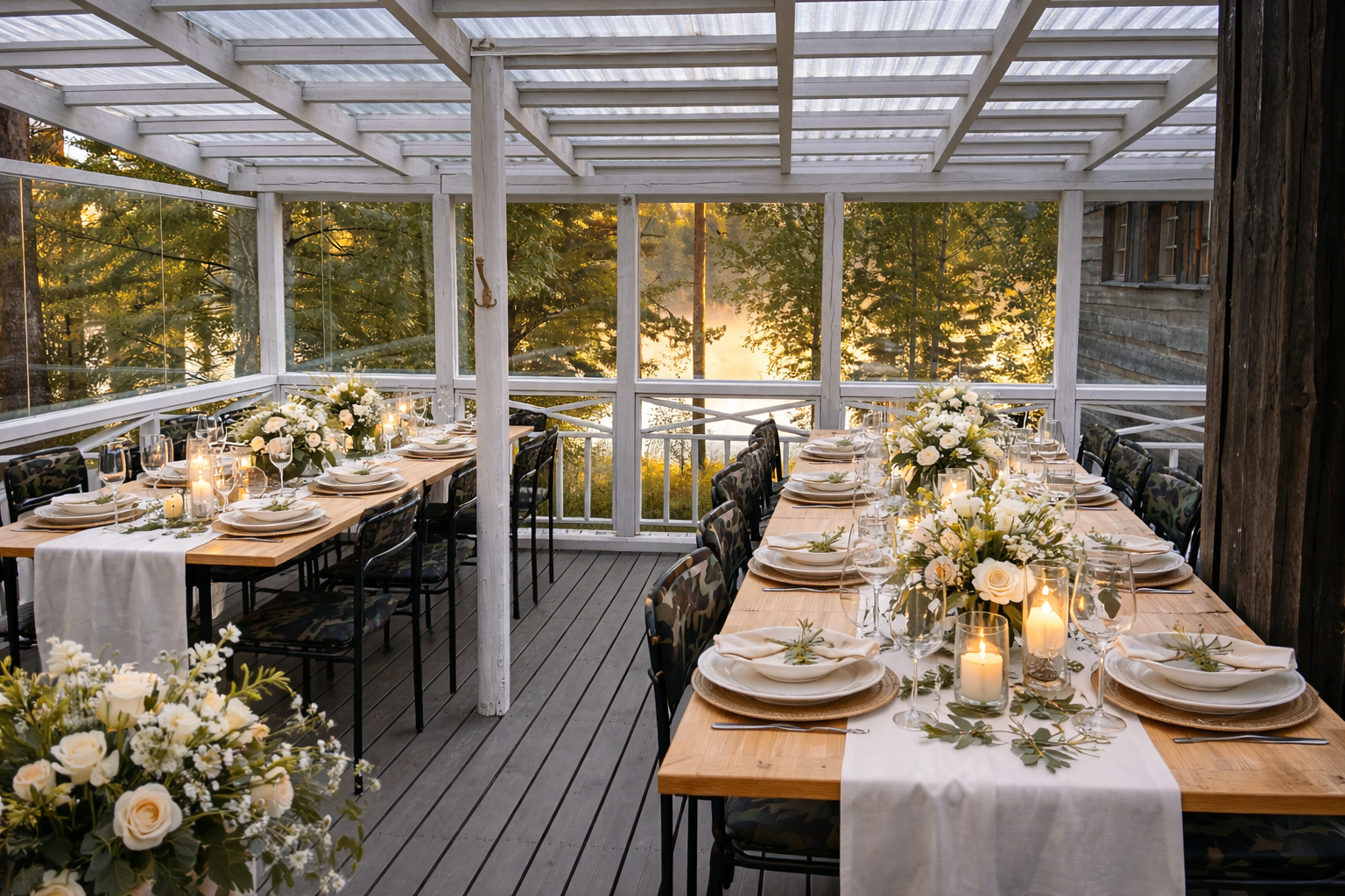 - Or in a beautifully styled indoor space with panoramic nature views