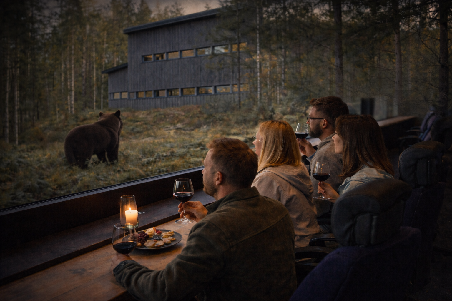 This experience invites you to observe wild brown bears while enjoying selected wines in a peaceful and exclusive setting.